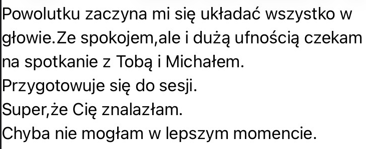 chcesz usłyszeć przed sesją: “Hej, nic się nie martw. Jesteś w dobrych rękach. Na żadnym etapie nie będziesz sama i niczego nie musisz zgadywać”