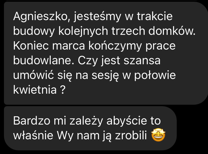To duża logistyka nie tylko dla nas, ale też dla ciebie (blokujesz kalendarz, nie przyjmujesz gości), więc działamy zgodnie z planem.